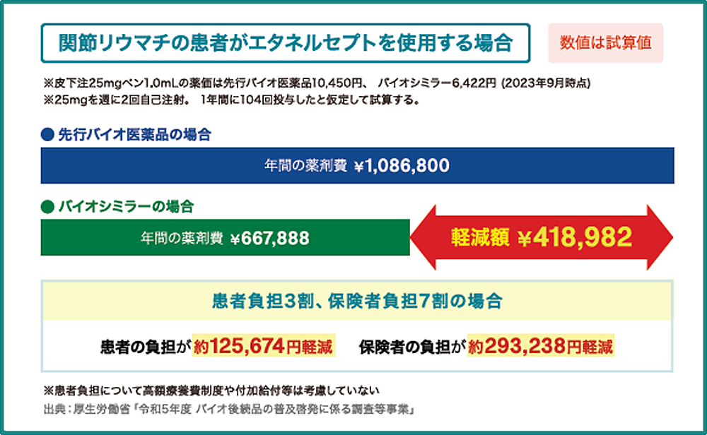 バイオシミラーは、先行品より薬価が低めに設定されることが多く、医療費(自己負担を含む)が軽くなる可能性があります。
