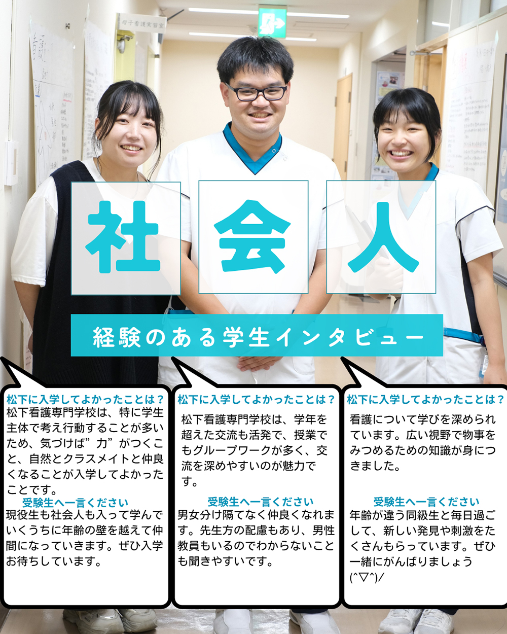 大きな不安を抱えながら、入学しましたが、今までの経験や体験は看護において無駄なことはないと、学校生活を送るなかで感じています。