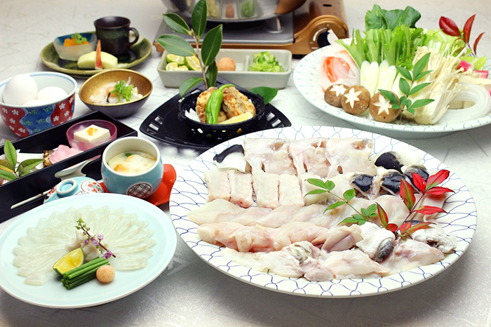 大阪の冬はやっぱり河豚!てっさやてっちりなどふぐ三昧のコースです。